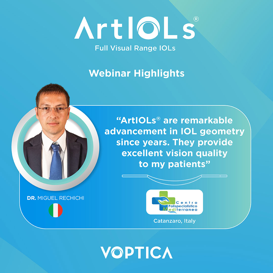 During the webinar, the participating surgeons presented consistent outcomes highlighting the lens’ optical quality, stability, and high patient satisfaction. Prof. Walter Sekundo shared findings from a comparative pilot study in refractive lens exchange patients, where ArtIOLs® demonstrated performance equal to or better than a leading non-diffractive EDOF lens.